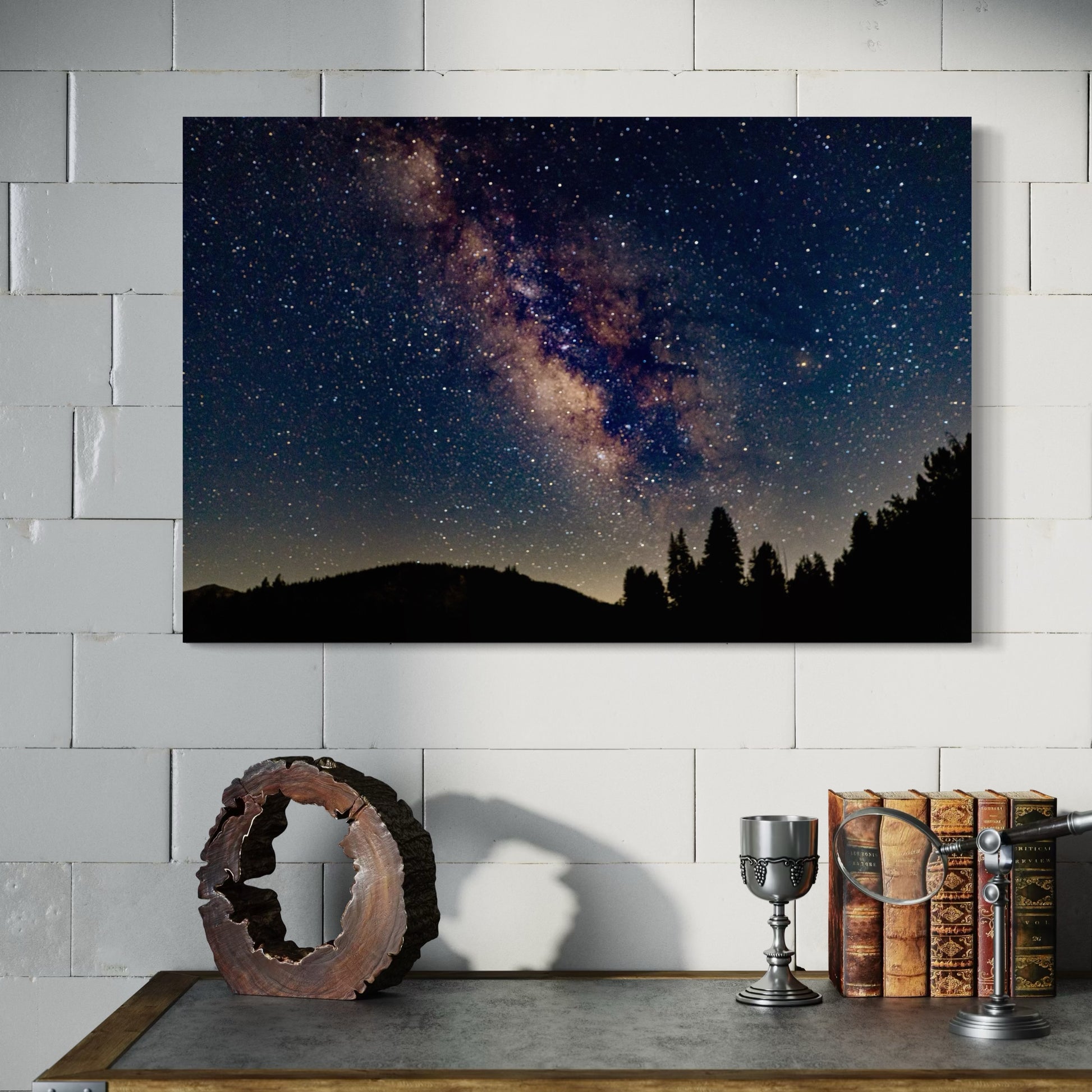 A breathtaking view of the Milky Way casting its glow over silhouetted trees, illuminating the night sky with countless stars.